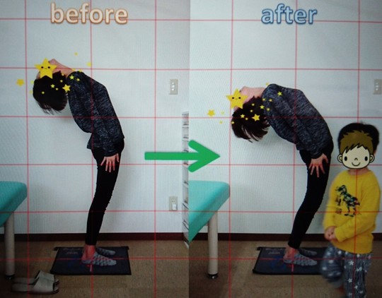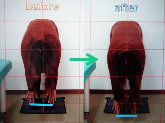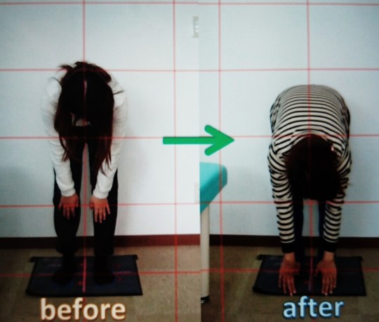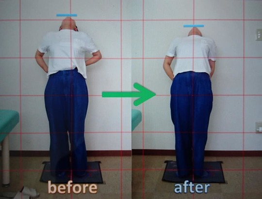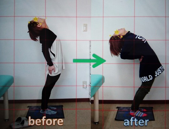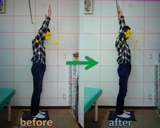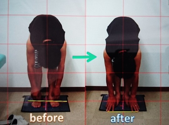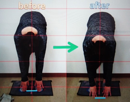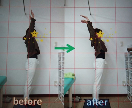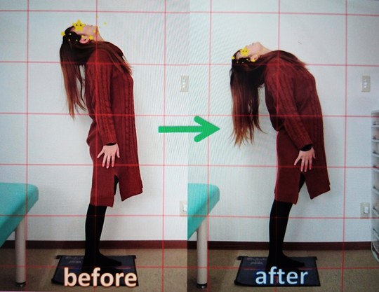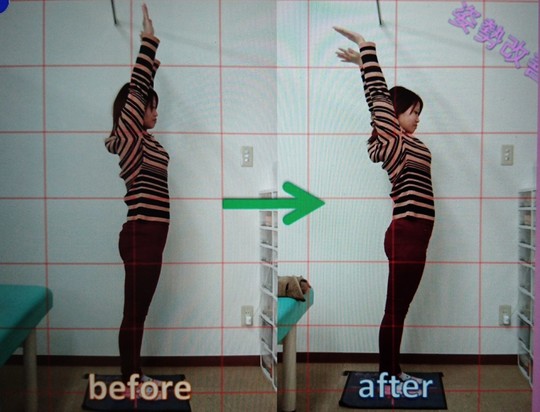 終わったあとは姿勢も正しくなり、肩と腰の可動域も広がり、後ろに身体を反らしたラインも美しくなってとても喜んでくださいました